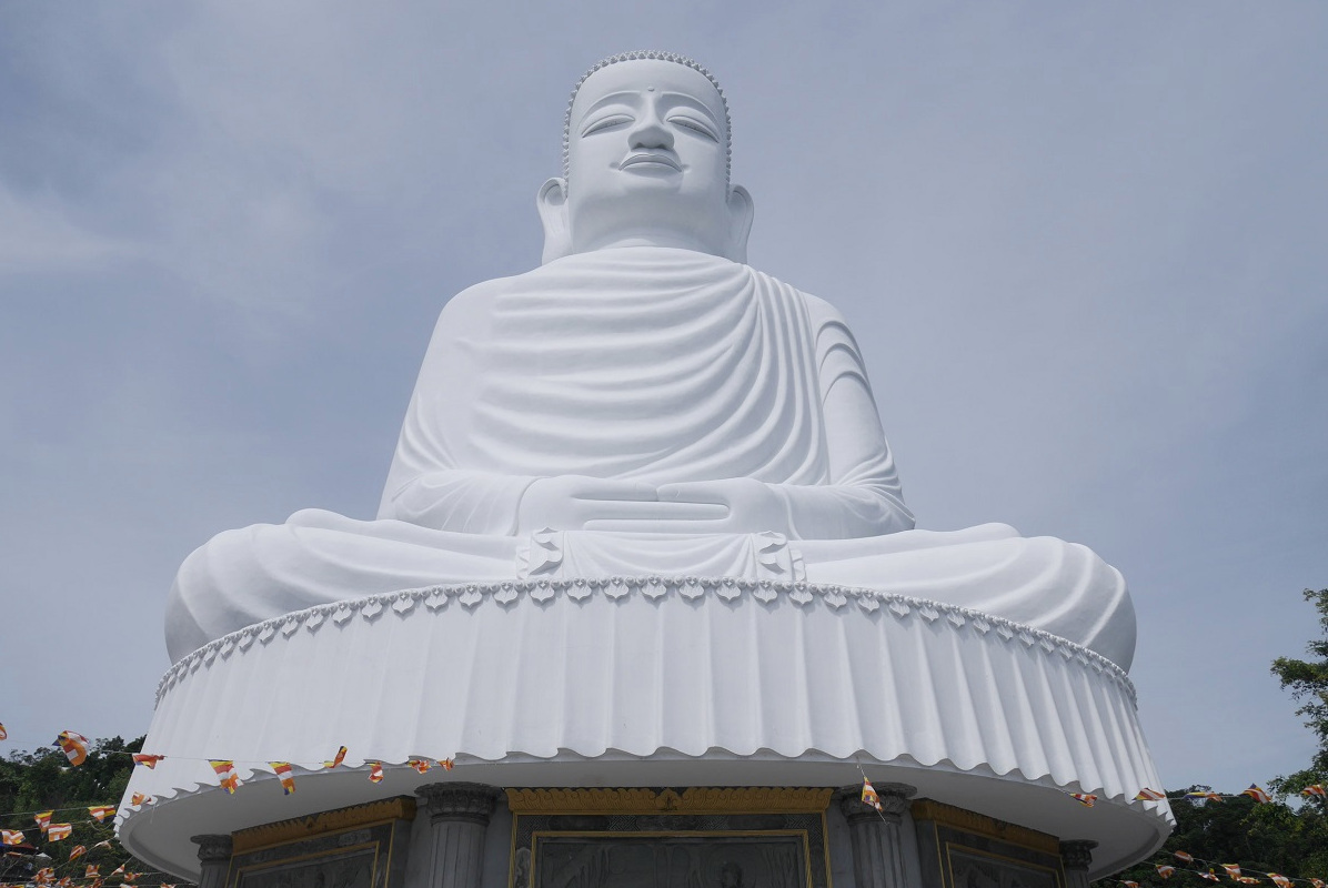 Linh Ung Pagoda This is one of three “Linh Ung” pagodas in Da Nang. The highlight is the giant 27-meter tall white statue of Shakyamuni Buddha. The statue sits on a circular lotus base measuring 6 meters in diameter. Seeing this massive white figure against the blue sky and green mountains is awe-inspiring.